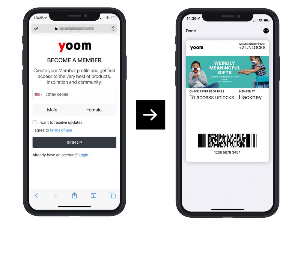 Online: A Call To Action on the website. Completion link pushed phone. Membercard added to the mobile wallet.